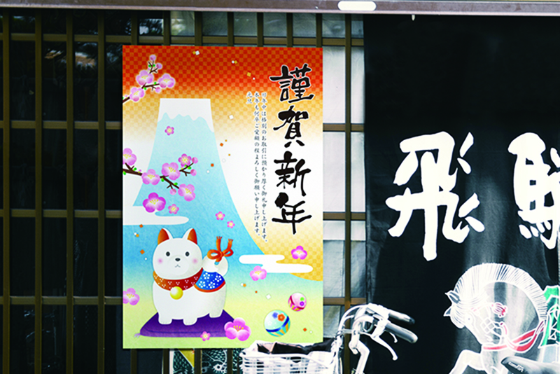 2018年の干支は「戌」。ちょこんと可愛らしいイヌですが富士山を堂々と背負って、あなたの代わりに待ちゆく人にお祝いの気持ちを伝えてくれます。お休み中のお店もお任せください!イヌ以外にも定番の富士山や日の出、梅の花やしめ飾り、角松など多種ご用意しております。