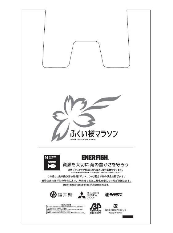 3/30(日)に行われた“ふくい桜マラソン”にて、当社の海洋生分解性レジ袋「ENERFISH(エネルフィッシュ)」をご使用いただきました。