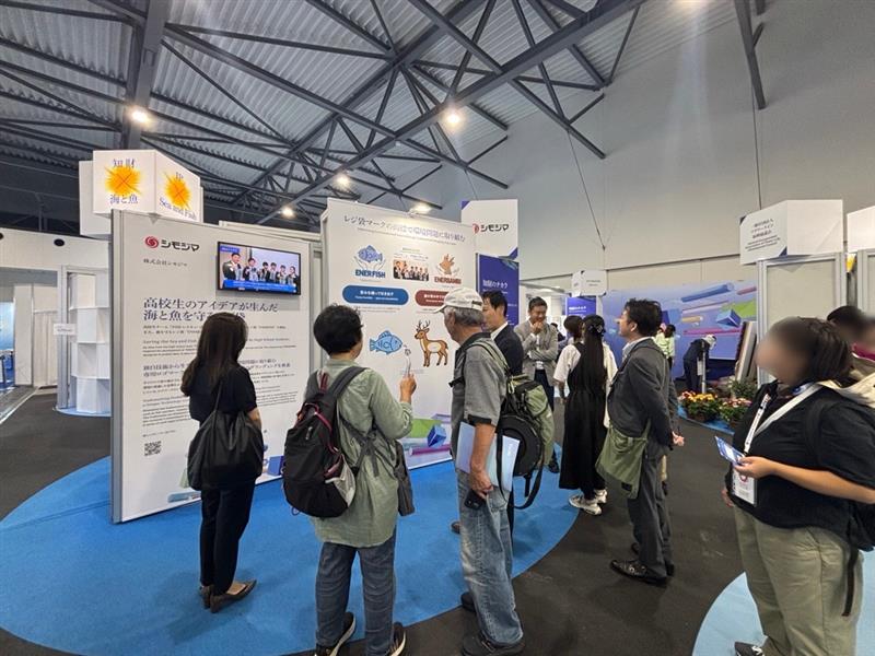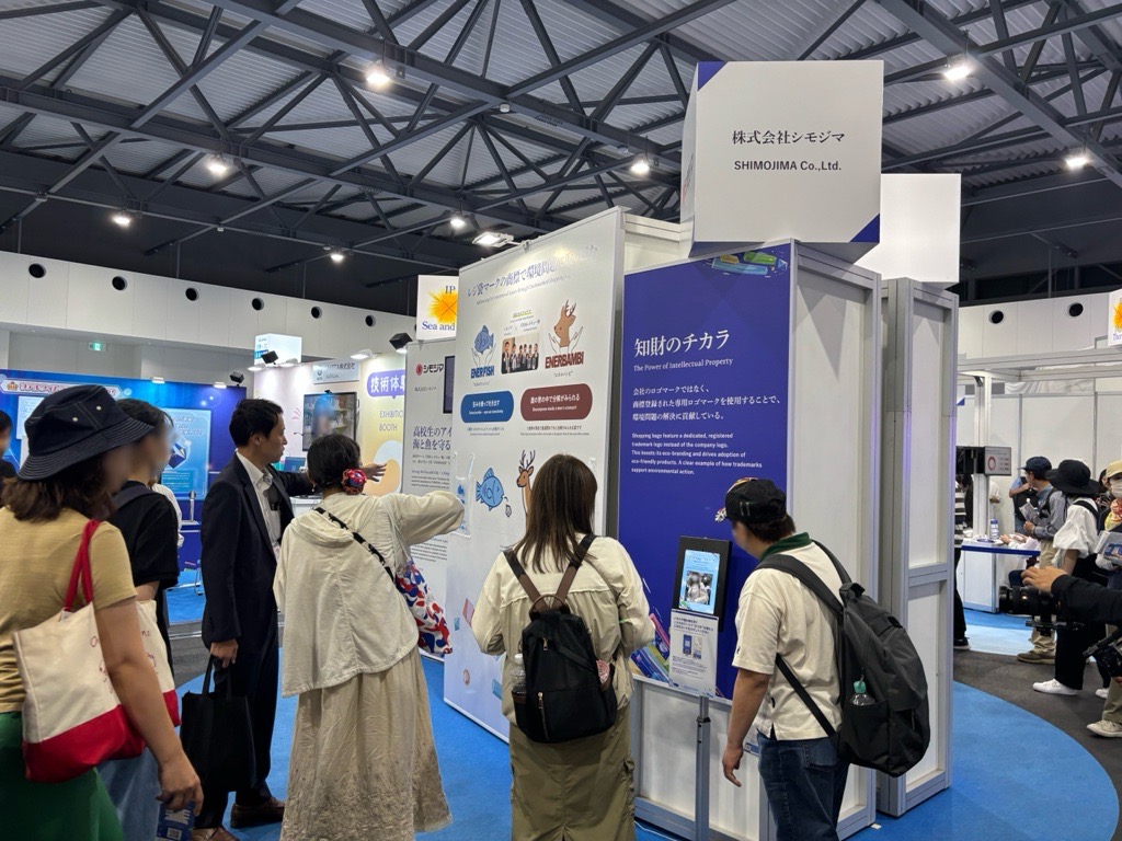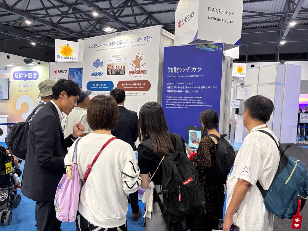 シモジマは10月2日(木)~10日(金)の9日間、2025年大阪・関西万博にて特許庁主催のイベント「明日を変える知財のチカラ~想いを届ける、世界をよくする~」に、海と魚を守るレジ袋“ENERFISH”(エネルフィッシュ)を出展しました。