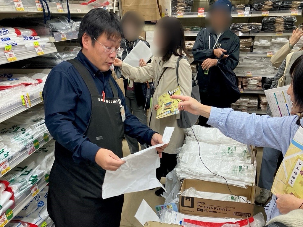今回の講座のスタート地点となったシモジマ馬喰横山店では、店舗の特徴や歴史などお話しをさせていただき、少しの時間ではありましたがフロアのご案内もさせていただきました。