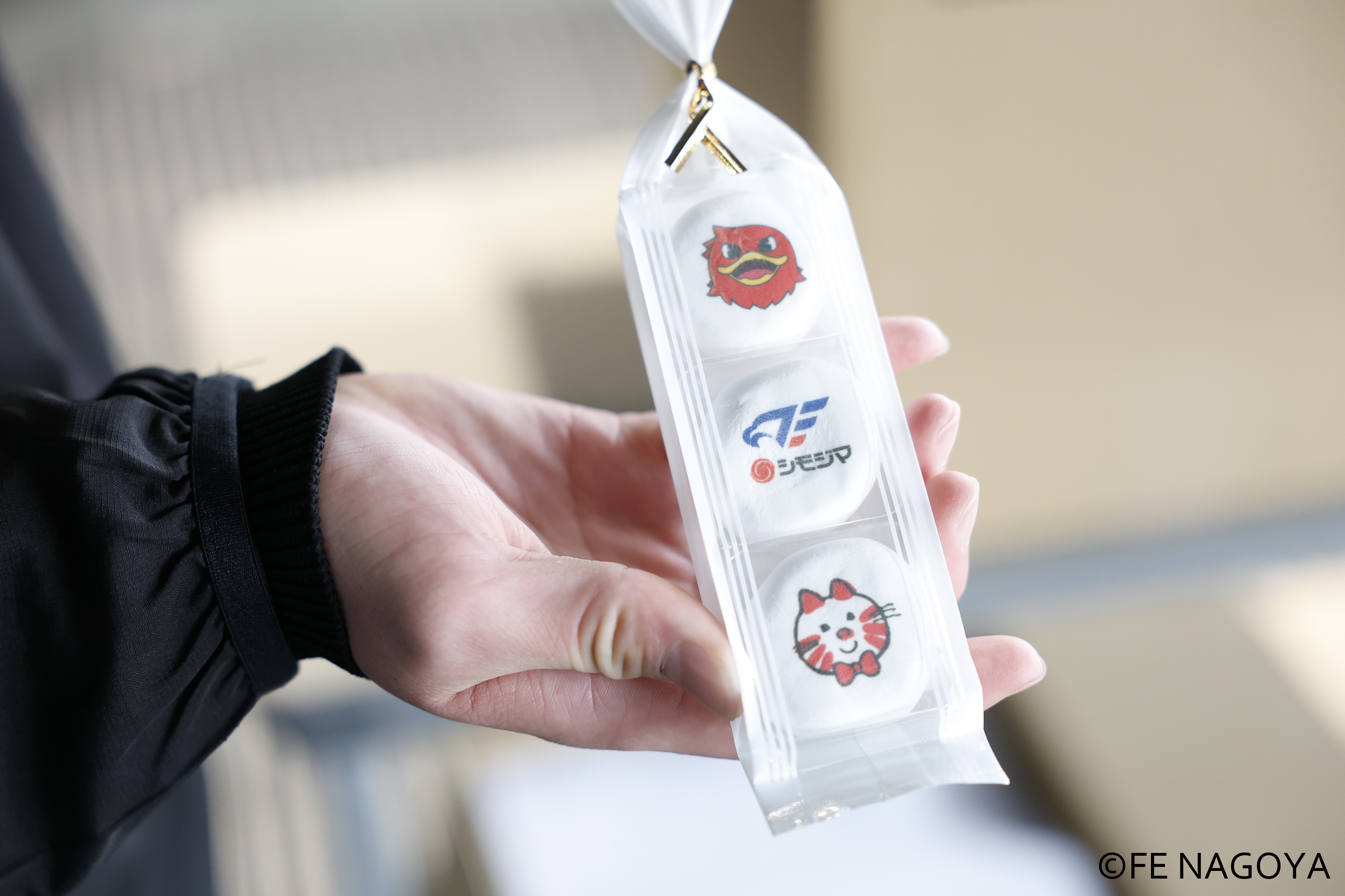試合当日はバレンタインデーということもあり、ご来場の皆さま全員に“オリジナルチョコマシュマロ”を配布いたしました!