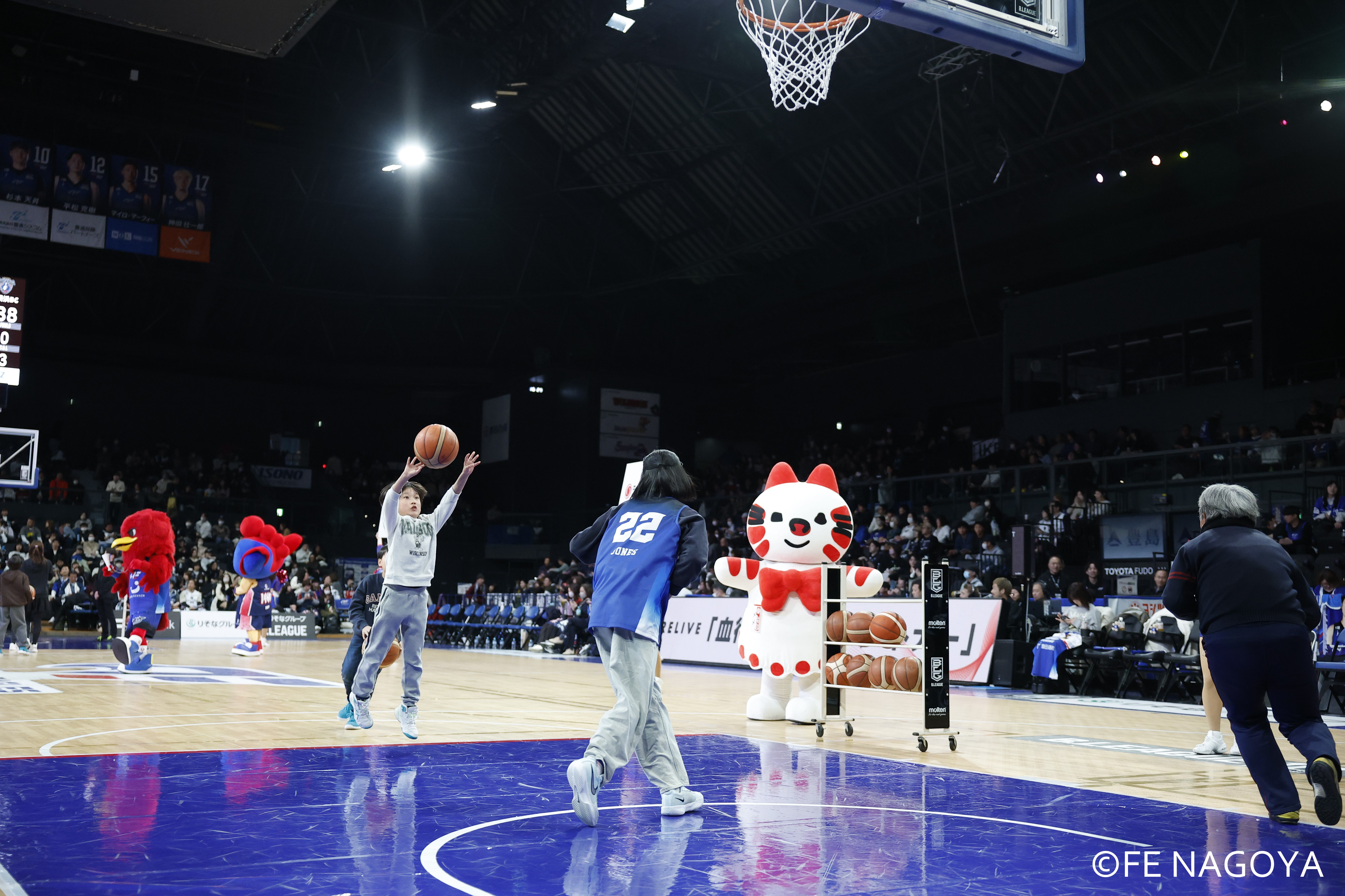 また、ハーフタイム時にはミニゲームとして、“メメちゃんチーム”と“スコッピーチーム”に分かれて、フリースロー大会が行われました。
