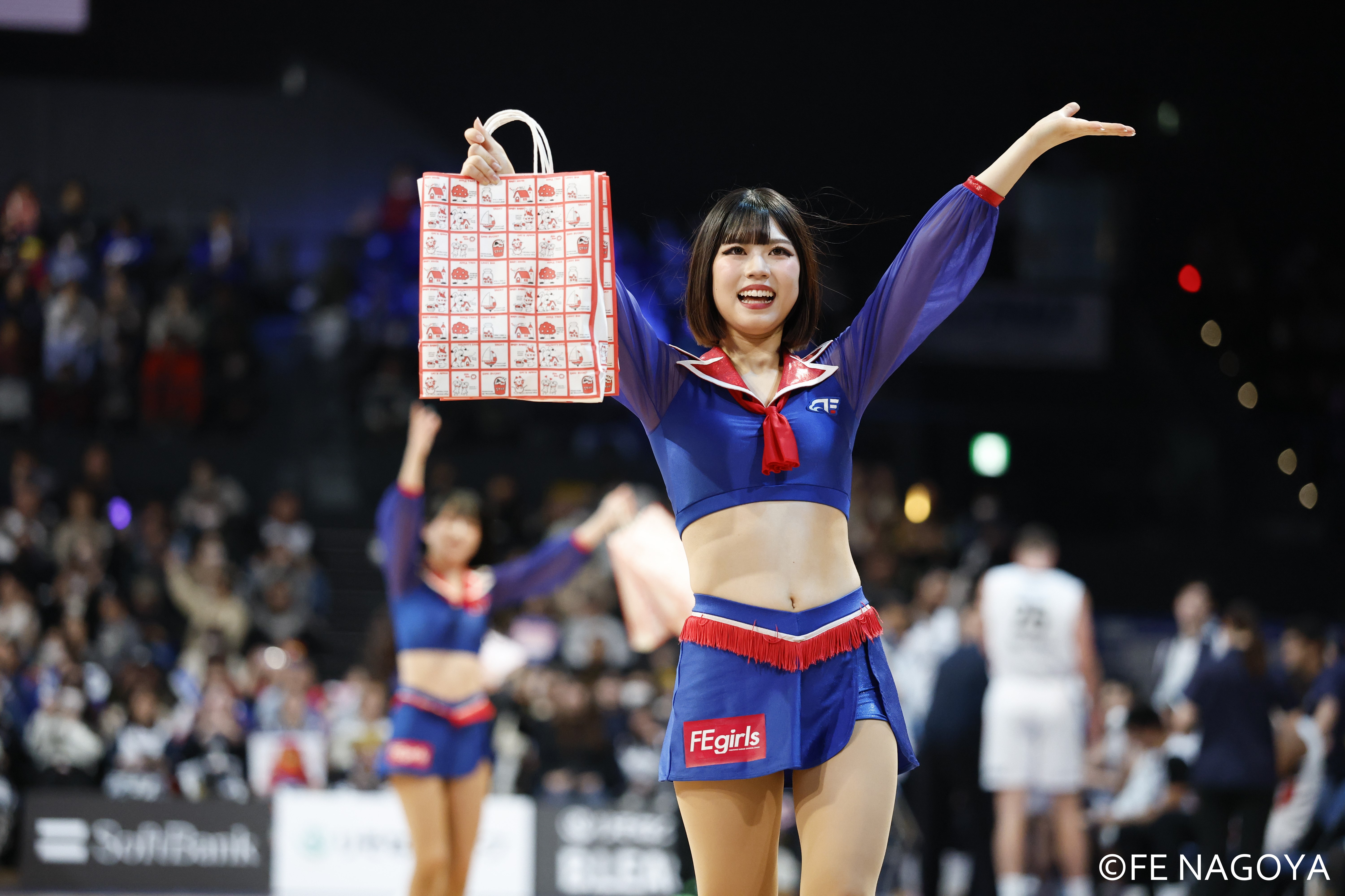 また、2Qオフィシャルタイムアウト時には、FEgirlsがその場で選んだ観客の方28名(各日14名ずつ)に“シモジマ オリジナルレトロ柄グッズ3点セット”をプレゼント!