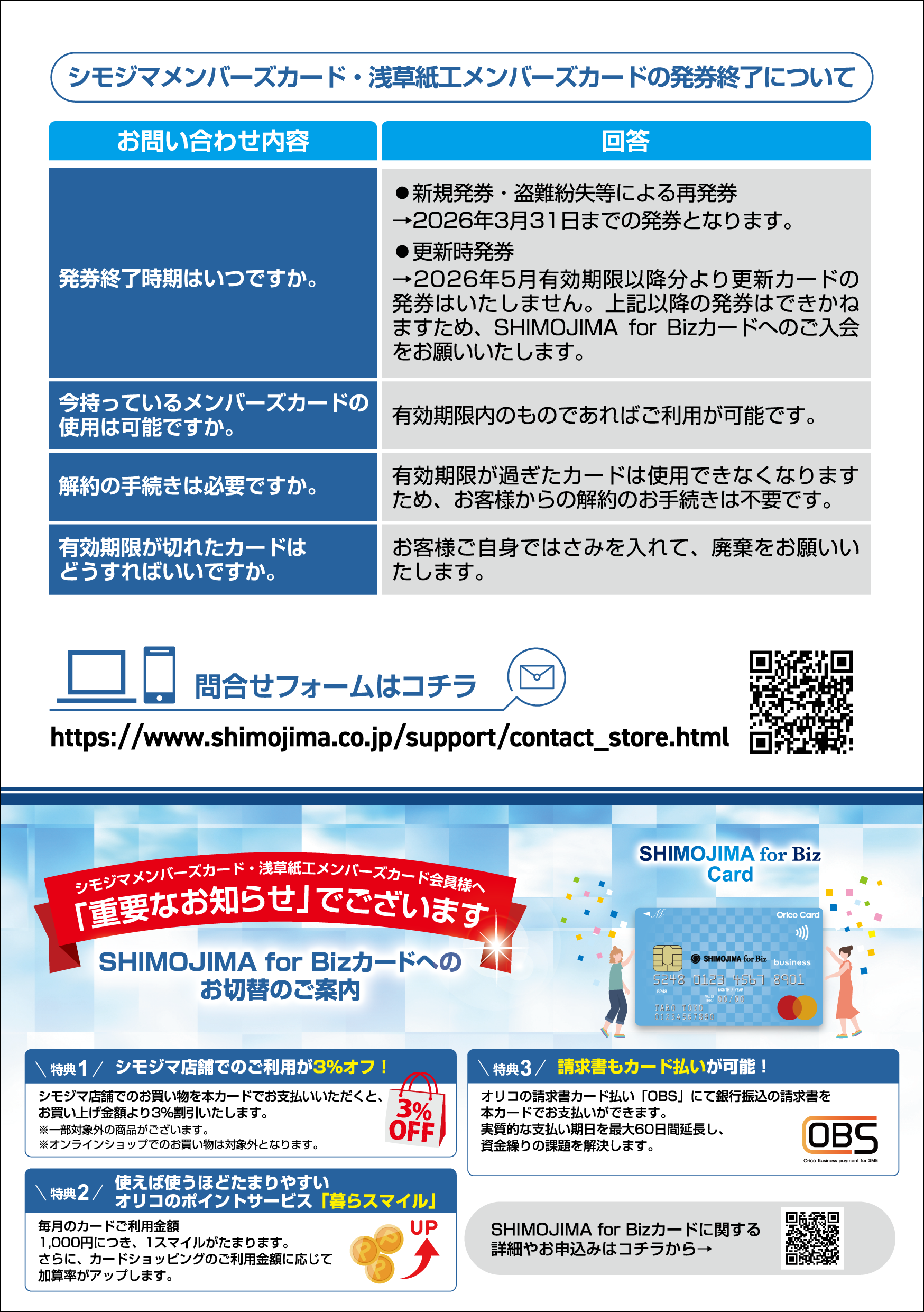 また、現在SHIMOJIMA for Bizカードにつきましては継続して新規会員を募集しております。